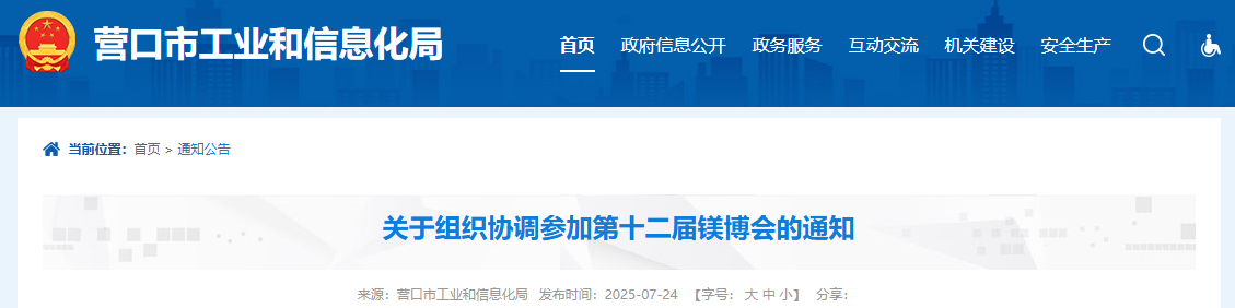 第十二屆中國(guó)遼寧國(guó)際鎂質(zhì)材料博覽會(huì)(以下簡(jiǎn)稱“鎂博會(huì)”)將于2025年9月22-24日在大石橋市召開(kāi)。此次鎂博會(huì)是營(yíng)口涉鎂產(chǎn)業(yè)的一次重大活動(dòng),是我市上下游企業(yè)與國(guó)際國(guó)內(nèi)涉鎂企業(yè)進(jìn)行產(chǎn)品、技術(shù)和貿(mào)易交流的重要平臺(tái),對(duì)加強(qiáng)產(chǎn)銷研用深度對(duì)接合作,進(jìn)一步推進(jìn)我市菱鎂產(chǎn)業(yè)高質(zhì)量發(fā)展發(fā)揮重要作用。