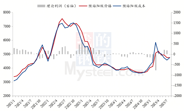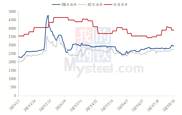 進(jìn)入8月份,石油焦市場(chǎng)交投延續(xù)積極氛圍,低硫焦再度推漲,帶動(dòng)市場(chǎng)焦價(jià)上調(diào)居多。煤瀝青原料煤焦油窄幅下行,深加工企業(yè)開(kāi)工負(fù)荷相繼提升,煤瀝青基本面利好出盡,價(jià)格開(kāi)始小幅回調(diào),據(jù)Mysteel測(cè)算,截至目前預(yù)焙陽(yáng)極生產(chǎn)成本較7月繼續(xù)增加147.46元/噸。后期東北煉廠即將開(kāi)始檢修,低硫焦在供應(yīng)縮減預(yù)期支撐下,價(jià)格仍有上漲空間,指標(biāo)貨資源緊俏,預(yù)計(jì)價(jià)格穩(wěn)中上行,普貨石油焦積極出貨,預(yù)計(jì)窄幅震蕩運(yùn)行;煤瀝青原料高溫煤焦油仍存在一定下滑空間,深加工企業(yè)開(kāi)工負(fù)荷提升,利空因素影響下預(yù)計(jì)新單價(jià)格弱勢(shì)整理。