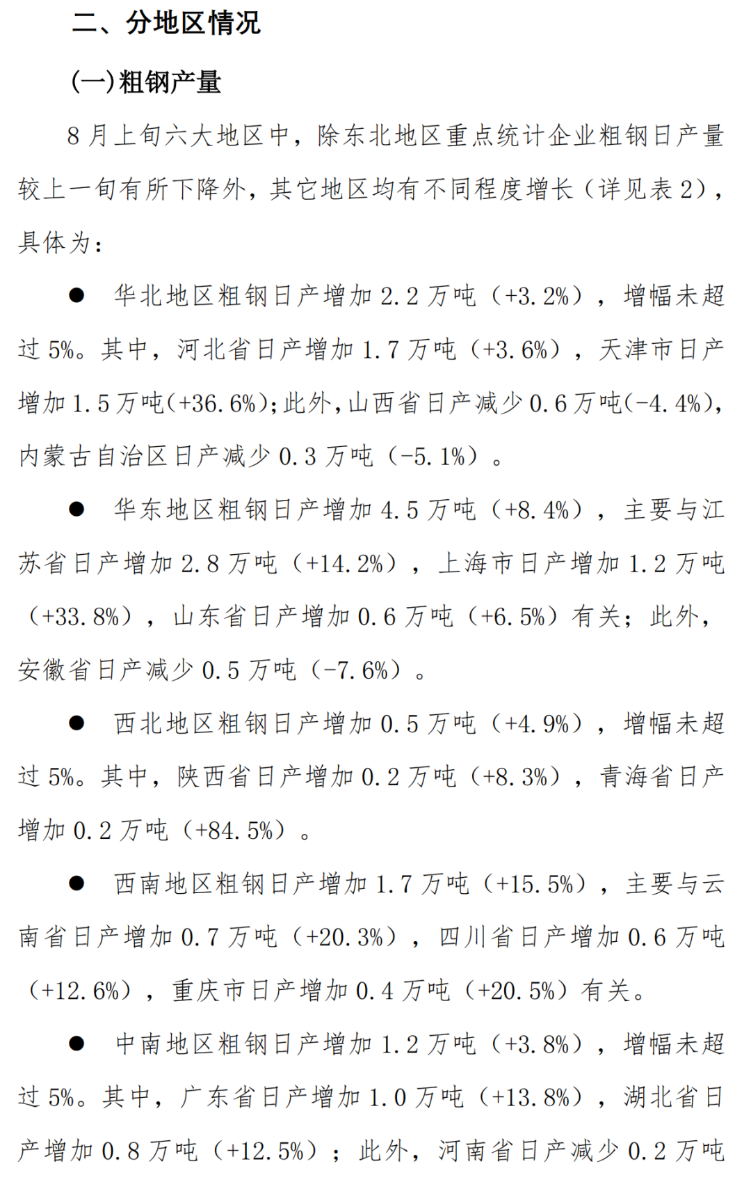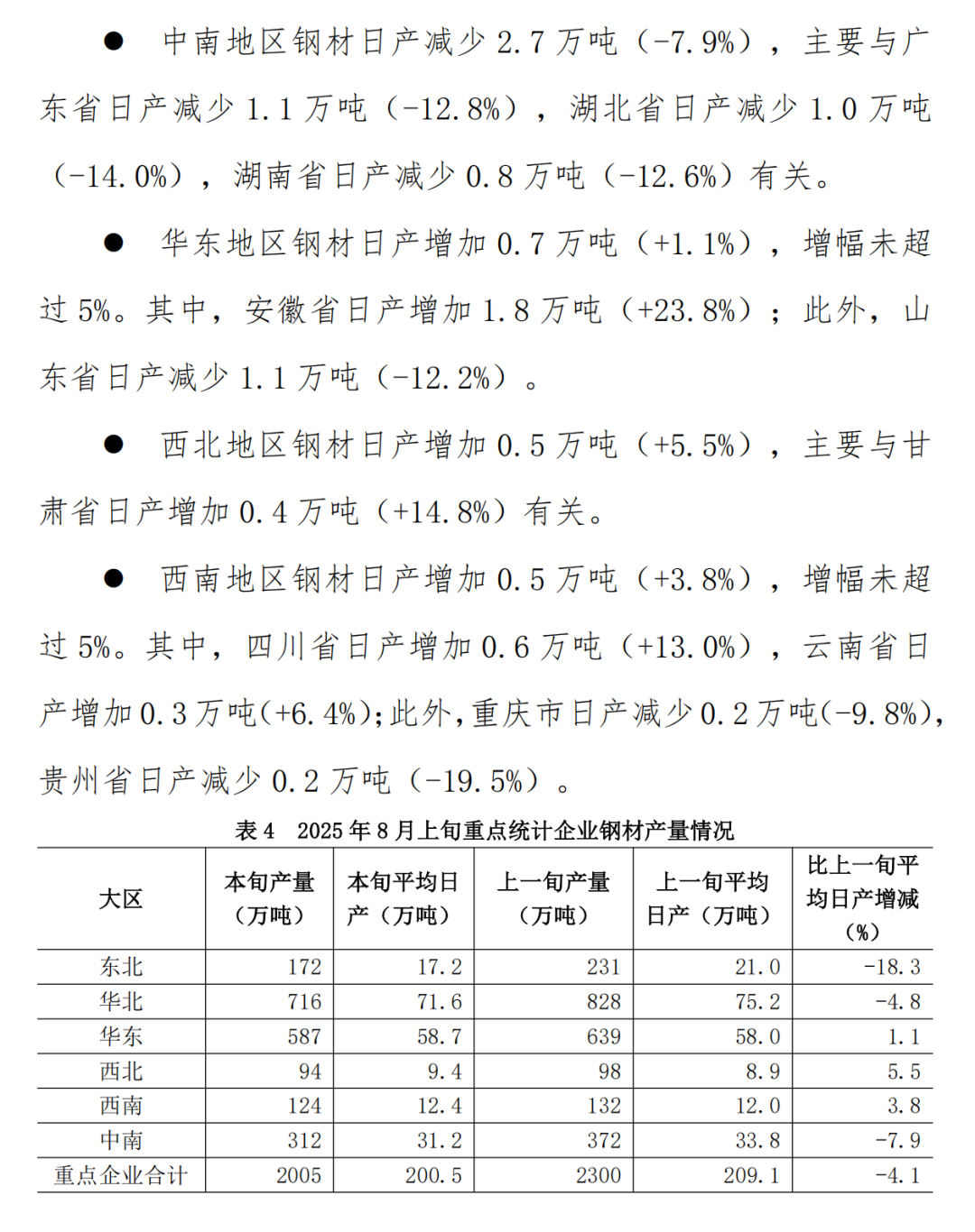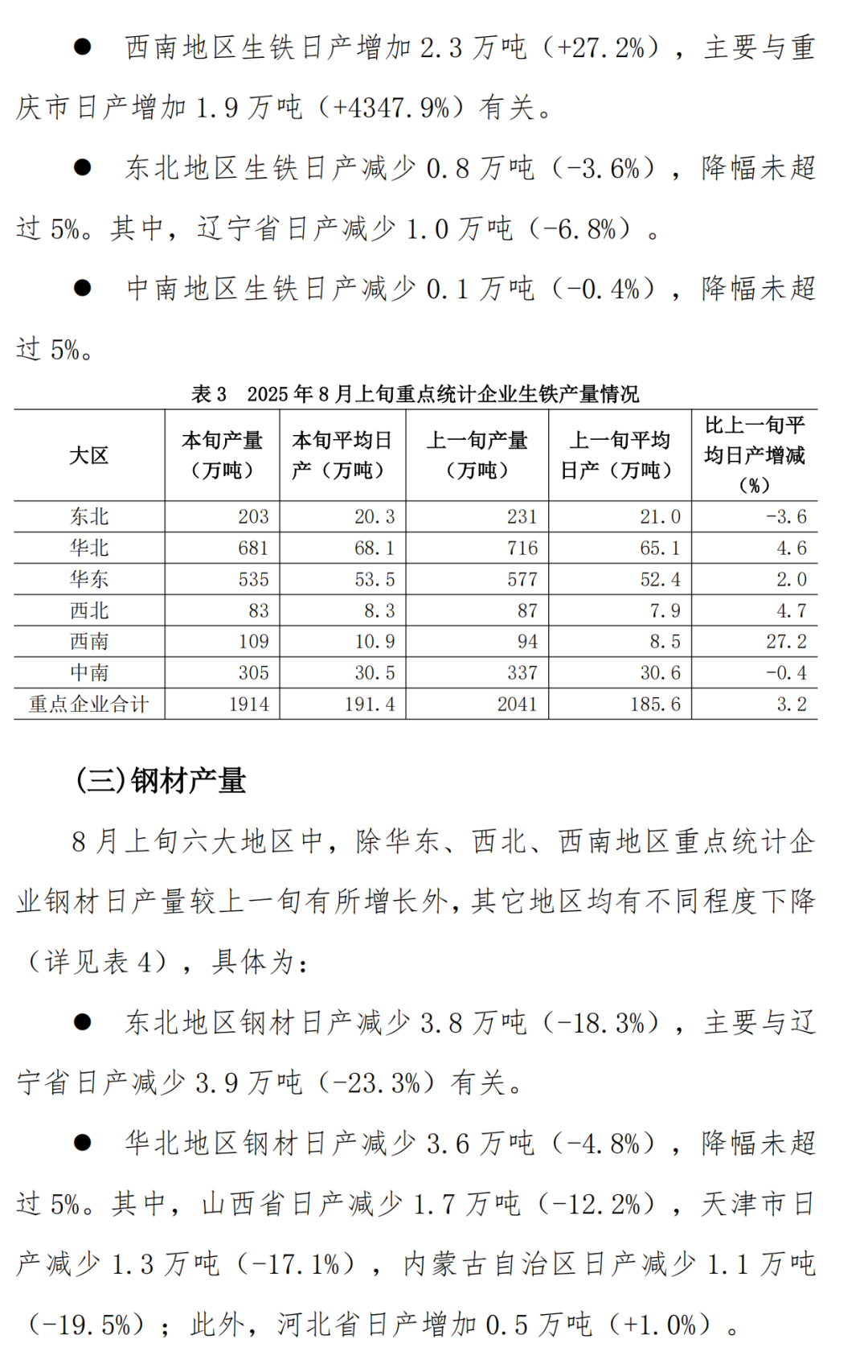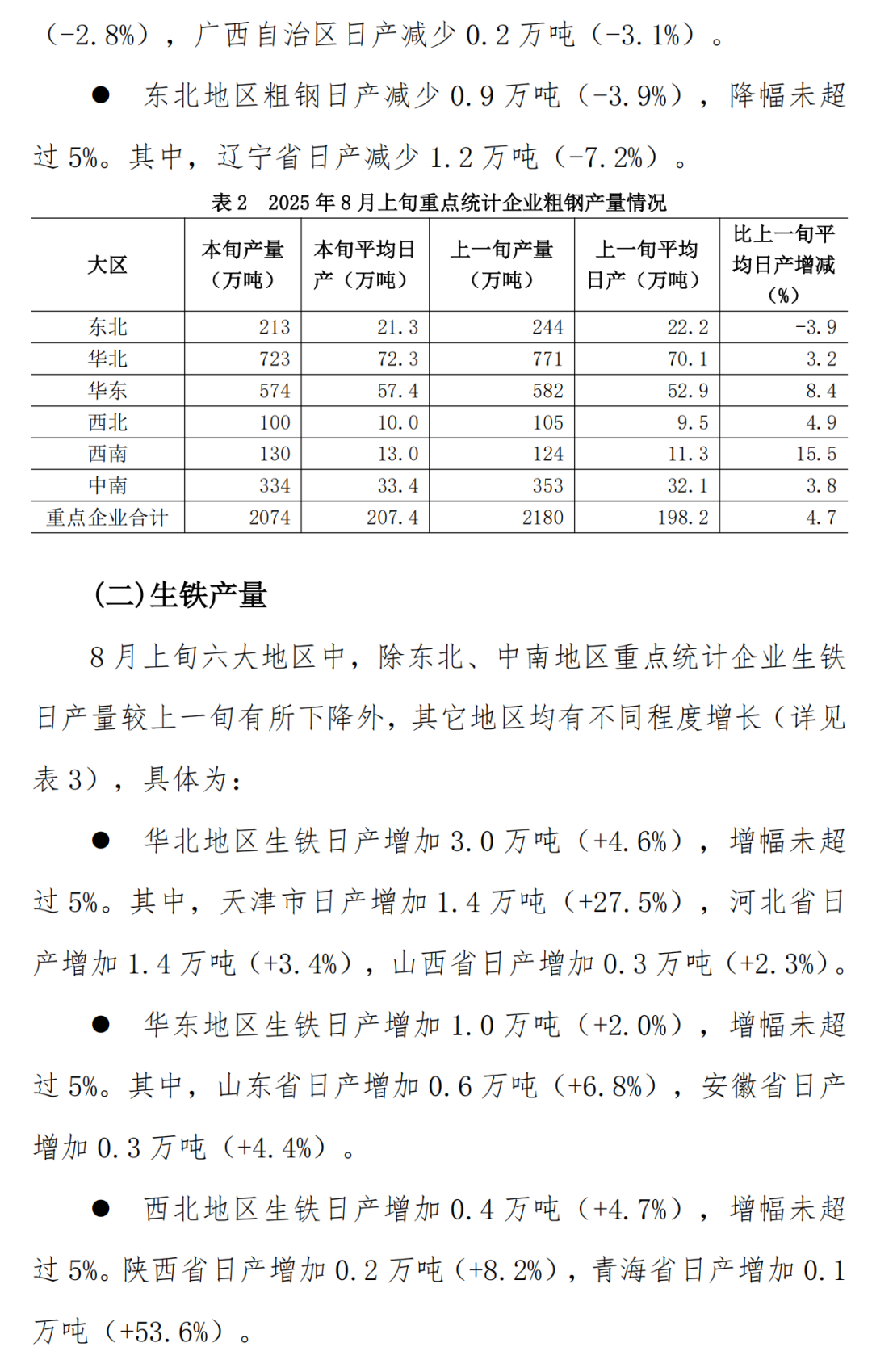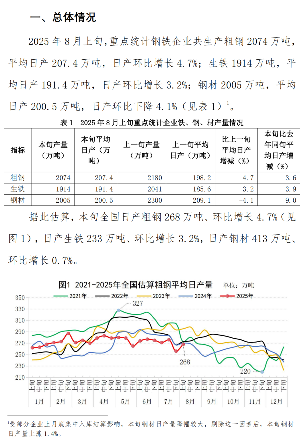 2025年8月上旬重點企業(yè)鋼鐵產(chǎn)量旬報