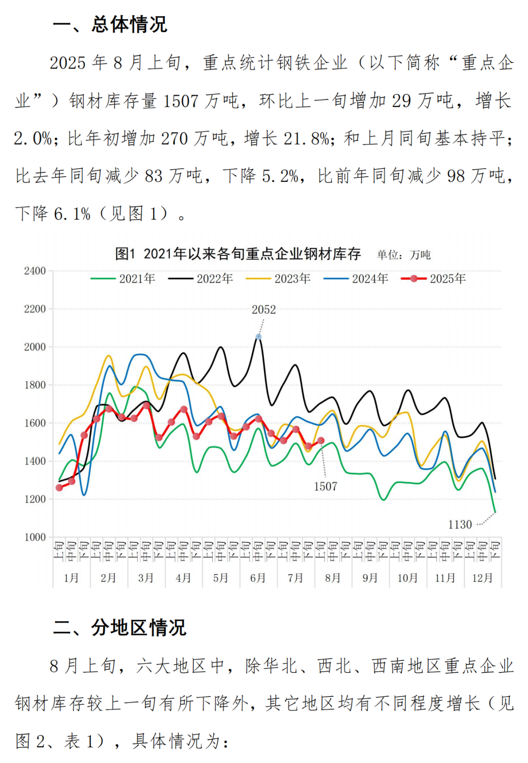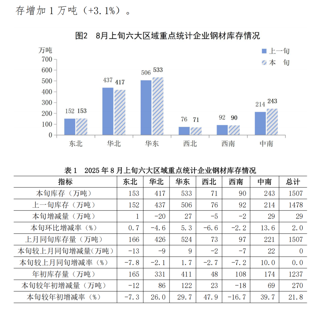 2025年8月上旬重點企業(yè)鋼鐵庫存旬報