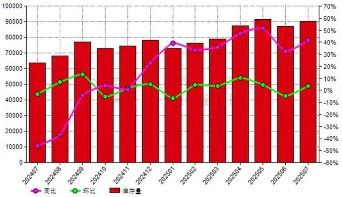 2025年1-7月,中國棕剛玉生產(chǎn)商月均庫存棕剛玉為83,485.71公噸,去年同期為59,542.86公噸,同比增加40.21%。